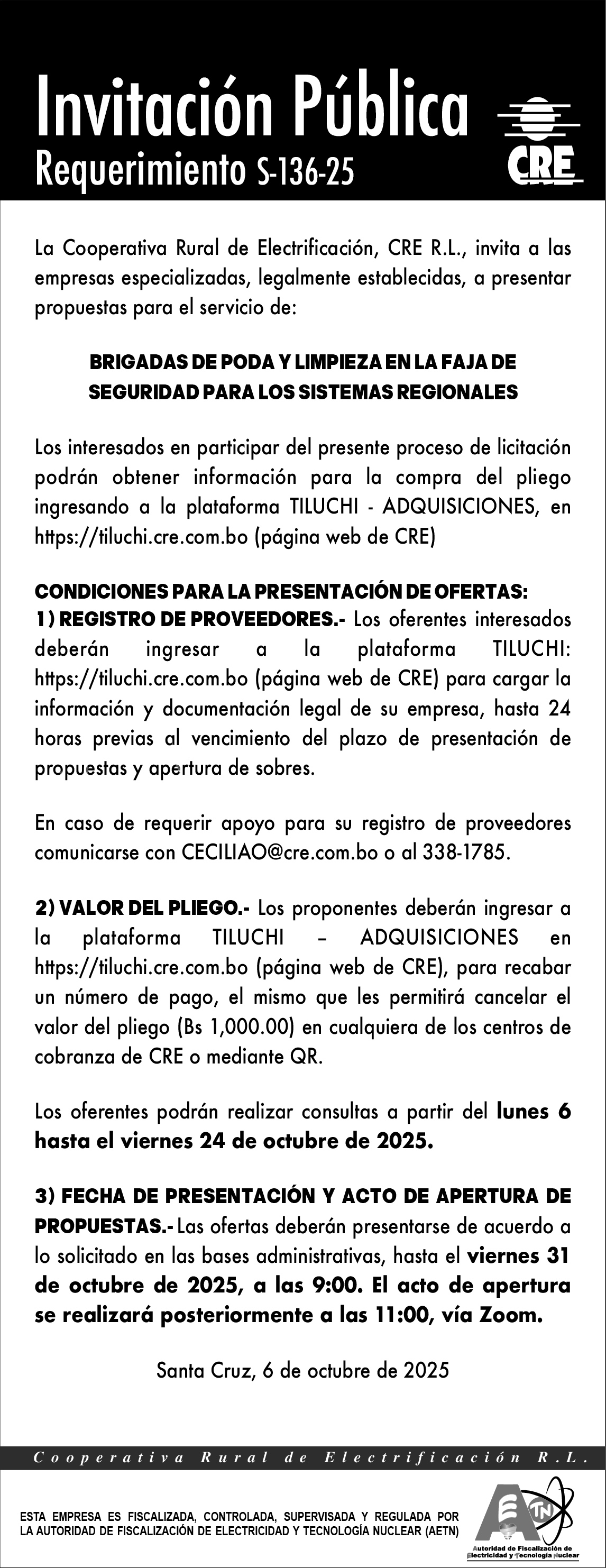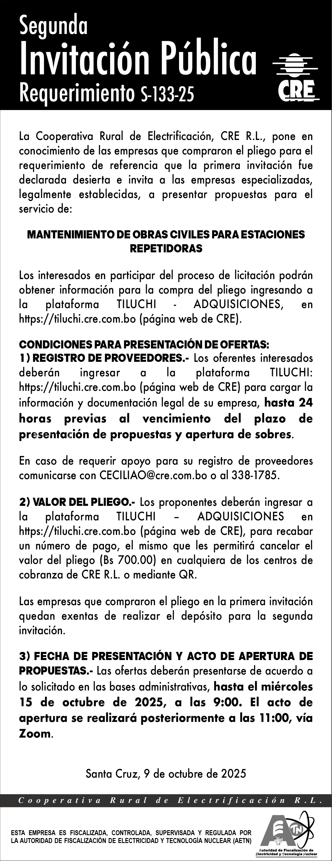 Fecha publicación: 09/10/2025 - Plazo presentación: 15/10/2025