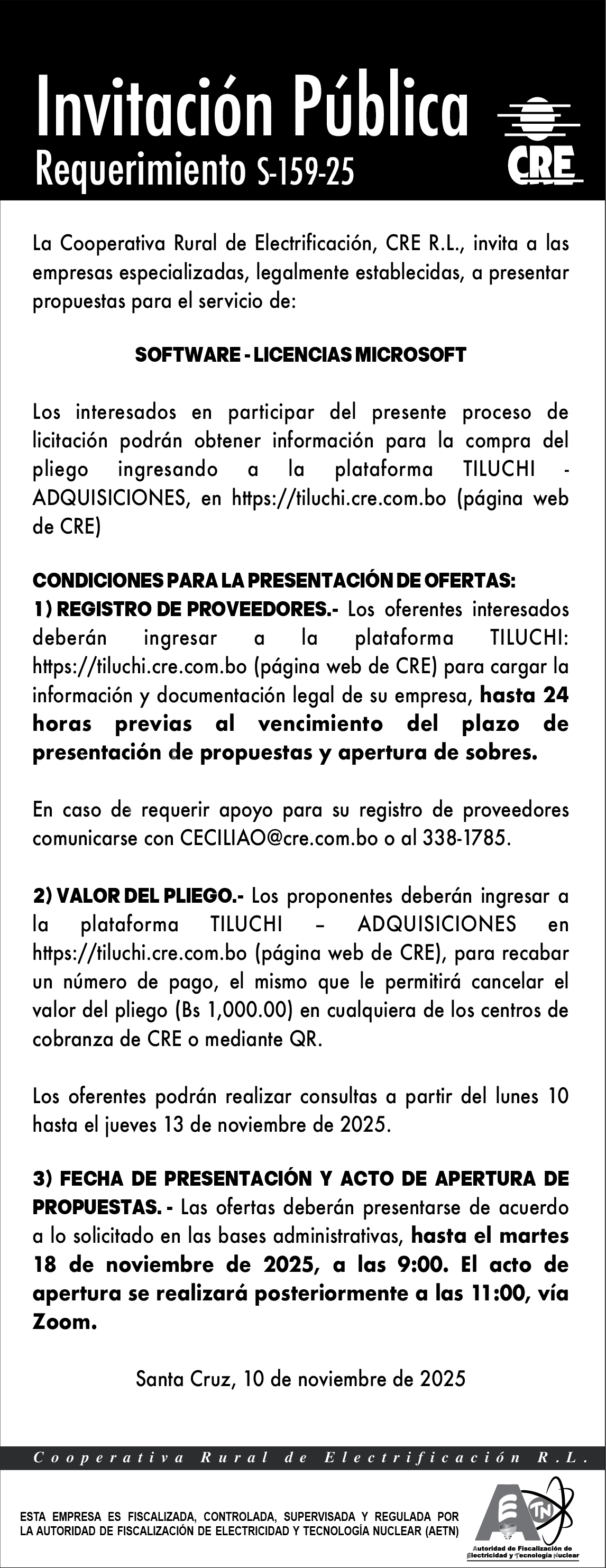 Fecha publicación: 10/11/2025 - Plazo presentación: 18/11/2025