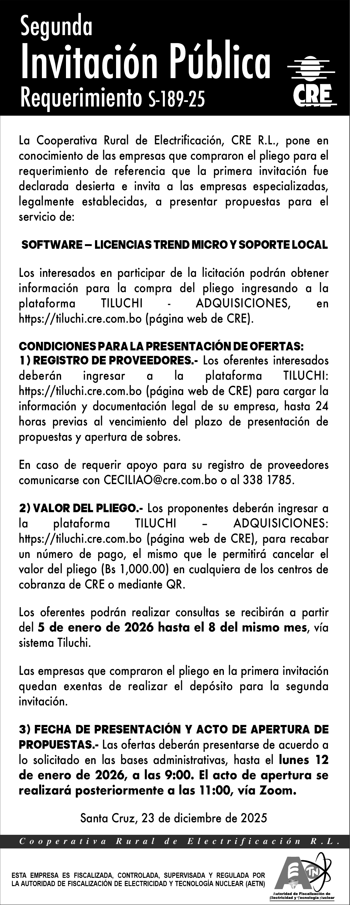 Fecha publicación: 23/12/2025 - Plazo presentación: 12/01/2026